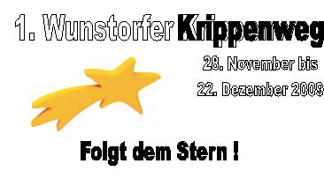 Vom 28. November bis zum 22. Dezember 2009 werden Ihnen an rund 20 Stationen in Wunstorf häusliche und internationale Krippenkunst geboten. Gezeigt werden traditionelle Weihnachtskrippen aus verschiedenen historischen Epochen, zeitgenössische Künstlerkrippen und volkstümliche Weihnachtsdarstellungen aus vielen Kulturen. Zu finden sind die Krippen an öffentlich zugänglichen Standorten wie Schaufenstern von Geschäften, in kulturellen und kirchlichen Institutionen, auf dem Weihnachtsmarkt und selbstverständlich auch in zahlreichen Wunstorfer Kirchen.